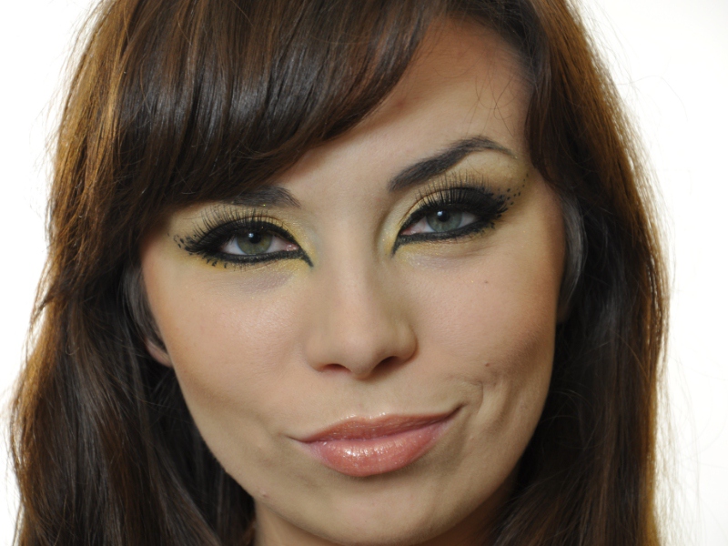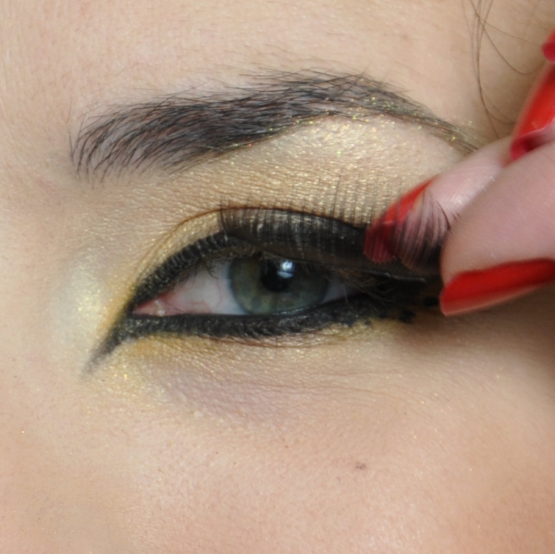 Makijaż wbrew pozorom nie jest bardzo skomplikowany . Jedyną trudność możemy napotkać w przyklejeniu sztucznych rzęs oraz w symetrycznym wyrysowaniu kreseczek wyostrzonych w kierunku do nosa. Jednak, przy wcześniejszym przećwiczeniu, nie powinien stanowić już problemu.