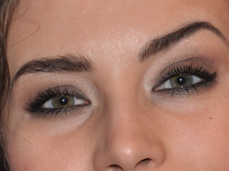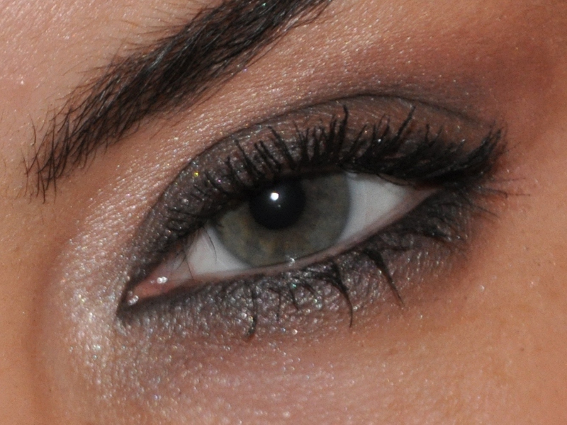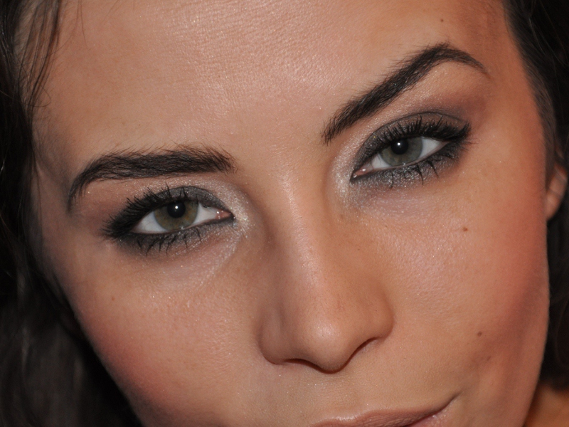 - Cieniem lekko perłowym w kolorze cielistym rozświetlamy wewnętrzny kącik oraz niepomalowaną dolną powiekę.