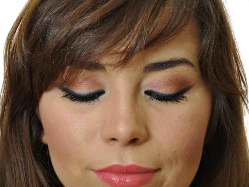 - Na dolnej powiece nakładam cień brzoskwiniowy (na całej długości), a od zewn. strony cień bordowy.