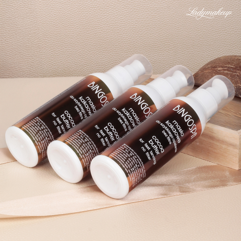 Masło kakaowe do szybkiego opalania od marki Bingospa pozwoli Ci skutecznie skrócić czas potrzebny na wystąpienie naturalnej opalenizny. Połączenie masła shea, oliwy z oliwek, d-pantenolu i oleju migdałowego zapewni Ci kompleksową pielęgnację ciała, intensywne odżywienie i dobre nawilżenie.