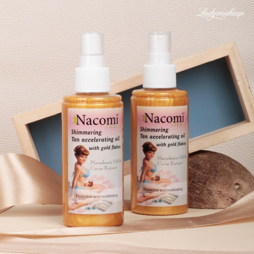 Taki bardzo ciekawy przyspieszacz do opalania przygotowała marka Nacomi. Wariant Sunny został wzbogacony o specjalne drobinki złota, olej makadamia, ekstrakt z kakaowca i witaminy z grupy E. W efekcie skóra po użyciu staje się także nawilżona i rozświetlona.