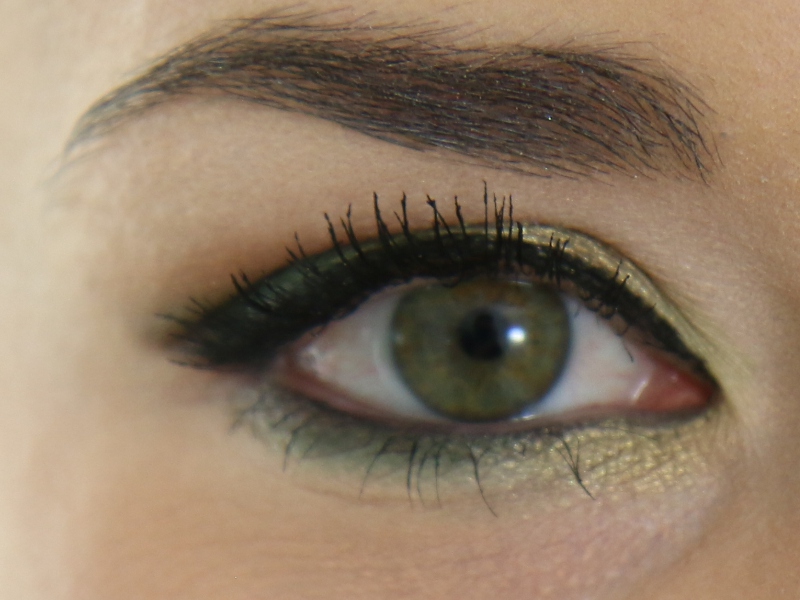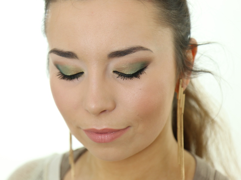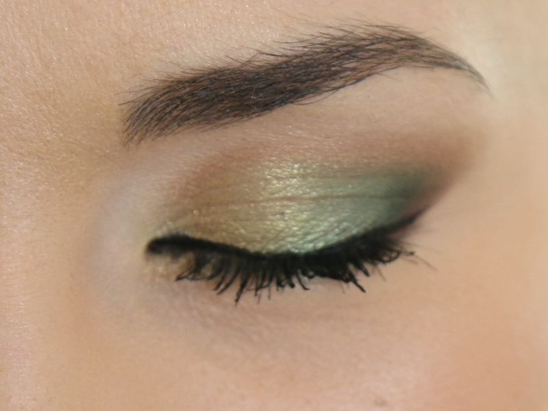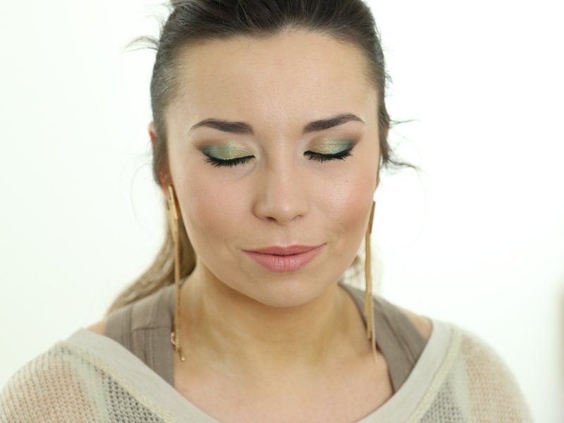 - Cień metaliczny zielony zaaplikuj za cieniem matowym, w kierunku do środka powieki.