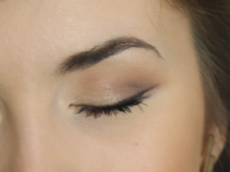 - Brązowym cieniem narysuj kreskę na powiece górnej, lekko wyciągnij ją do skroni.