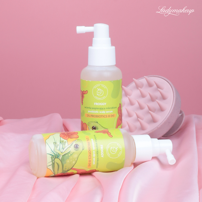Koniecznie poznaj także wcierkę do skóry głowy Froggy od Hairy Tale Cosmetics. Połączenie ekstraktu z rukwi wodnej, nasturcji, rozmarynu oraz postbiotyku z lizatu i specjalnych szczepów bakterii, skutecznie wesprze Twój naturalny mikrobiom skóry. Będziesz cieszyć się dogłębnym nawilżeniem i przywróconym uczuciem komfortu. Z pomocą tej wcierki, bardzo dobrze zapobiegniesz łuszczeniu, swędzeniu i nieprzyjemnemu uczuciu ściągnięcia. A to jeszcze nie wszystko! Formuła pozwoli Ci skutecznie zastymulować wzrost nowych i jeszcze zdrowszych włosów. Będą pięknie uniesione u nasady i maksymalnie świeże, dzięki czemu każda Twoja fryzura zaprezentuje się jeszcze lepiej. Brzmi rewelacyjnie, prawda?
