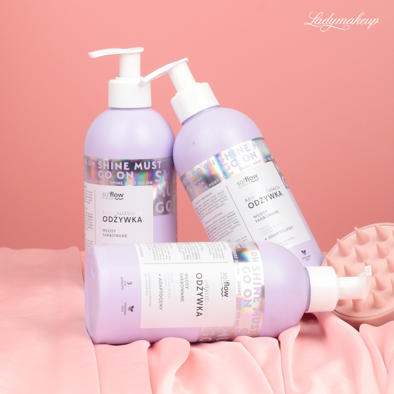O farbowane, suche włosy zadbasz także z rewitalizującą odżywką od marki So!Flow, która świetnie odżywia, nawilża, a do tego wspomaga odbudowę pasm od wewnątrz i oczywiście — chroni kolor. Już po pierwszej aplikacji zauważysz także to, że świetnie ułatwia rozczesywanie, wykazuje działanie przeciwutleniające i wzmacniające. Tutaj z kolei za świetne działanie odpowiada ekstrakt z jeżyny, estry jojoba i adaptogen w postaci różeńca górskiego. A sama odżywka pachnie przepięknie słodką śliwką i jeżyną!