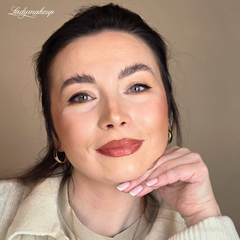 Na początek mamy dla Ciebie stylizację, w której za pomocą konturówki dokładnie obrysowujemy usta, a następnie wypełniamy je subtelniejszym kolorem. W tym zestawieniu postawiliśmy na ceglasto-brązowy odcień ze złoto-brązowym finiszem. Z całą pewnością nie musimy przekonywać Cię co do tego, że to idealne połączenie właśnie na jesień. Takie tony idealnie nawiązują do kolorów spadających liści, a także złotego światła, które jest charakterystyczne dla tej pory roku. Stawiając na to połączenie, zadbasz o to, aby Twoja usta były jednocześnie miękkie i pełne głębi. To combo sprawdzi się fantastycznie zarówno w przypadku jasnej, jak i bardziej oliwkowej cery. Połączenie jest subtelne, eleganckie i kobiece, a tym samym idealnie wpisuje się w obowiązujące trendy.
