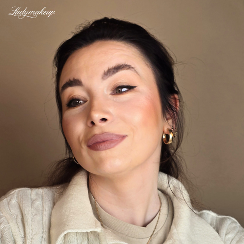 Uwielbiasz ciemne kolory, ale jednocześnie chcesz postawić na coś, co nie będzie bardzo intensywne? W takim razie kolejna propozycja może okazać się dla Ciebie strzałem w dziesiątkę. Otóż łączymy tutaj chłodną konturówkę w odcieniu jasnego beżu z matowo-satynową pomadką w kolorze neutralnego, beżowo-różowego nudziaka. To zestawienie jest niezwykle harmonijnie i pięknie podkreśla tony obu tych produktów. W efekcie makijaż ust wygląda świeżo, nowocześnie i bardzo elegancko.