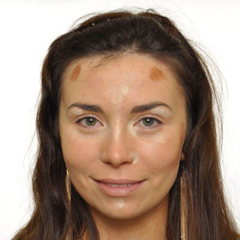 - KRYOLAN-cień czarny, cielisty, piaskowy i pomarańczowy oraz złoty z paletki SANTIAGO,