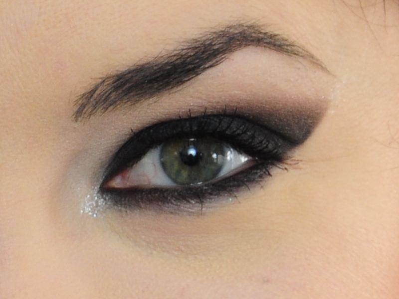 - Grafitowy cień nałóż na całą powiekę ruchomą oraz lekko powyżej niej (ale tylko od zewnątrz).