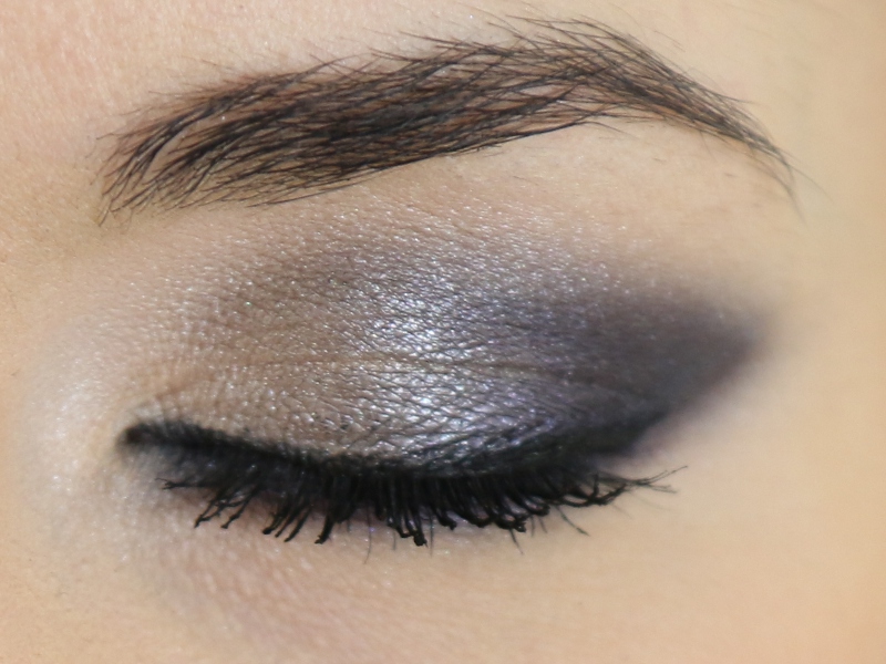 - Granatowy cień zaaplikuj na powiece od zewnętrznej strony aż do środka oka.