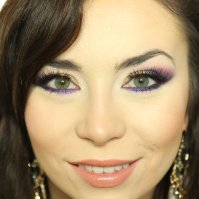Ten intensywny fiolet pochodzi z genialnej paletki Bikor. Uwielbiamy je nie tylko za ogromny wybór odcieni, ale też formułę i pigmentację. Innym cieniem, na który się zdecydowaliśmy jest granat z paletki Glazel. Produkty metaliczne nałożone wilgotnym pędzelkiem syntetycznym, doskonale "przykleją" się do powieki. Dzięki temu, będą również lepiej się prezentować. Do rozjaśnienia powieki od wewnętrznej strony warto użyć korektora i na tak przygotowane miejsca, nałożyć jasny mieniący się cień. Brokaty użyte w tym makijażu to nic innego jak cudeńka NYX, zaaplikowane na odpowiedni klej. Również na twarz zdecydowaliśmy się zastosować ostatnią nowość Golden Rose. Baza połączona z rozświetlaczem, sprawdzi się w tego typu make-up'ie znakomicie. Rozświetli skórę, sprawi że będzie prezentować się o niebo lepiej. Nie możemy zapomnieć również o ulubionym i bardzo trwałym podkładzie, czyli niezawodnym Make-up Atelier Paris w wersji wodoodpornej. Nałożony gąbeczką, wyglądał będzie się przepięknie. Na policzki powędrował piękny róż Milani, a także ubóstwiana Mary Lou Manizer. Jeśli macie ochotę na mocniejsze oko i stonowane usta, serdecznie zapraszamy do obejrzenia tej propozycji. Koniecznie dajcie znać w komentarzach, jak podoba Wam się takie kolorowe "szaleństwo".