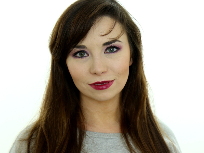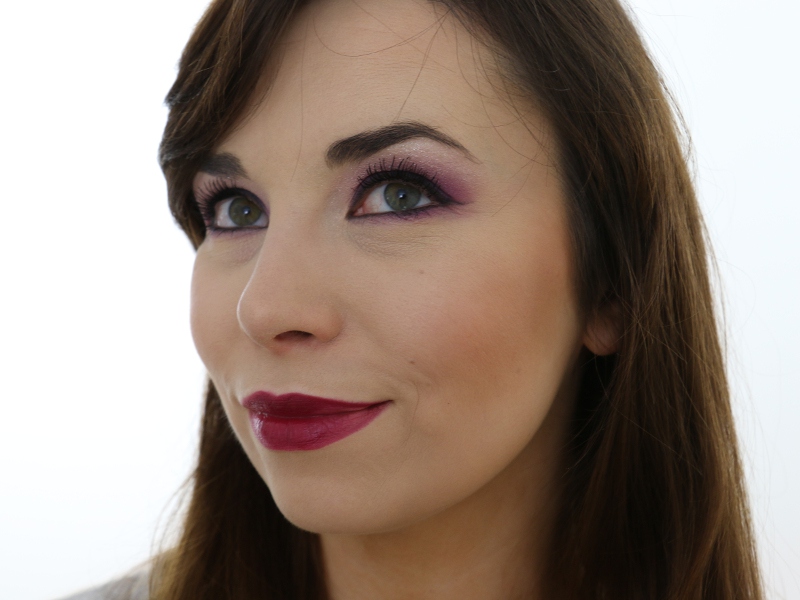 - Usta pomaluj pomadką w jagodowym odcieniu.