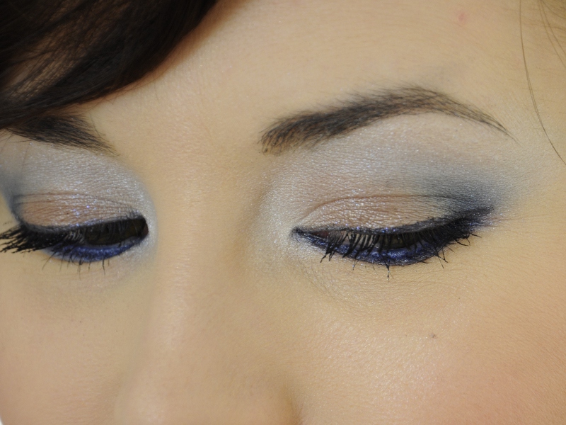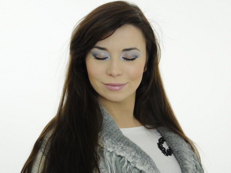 rozgościła się w naszym kraju na dobre, a śnieg pięknie rozjaśnia krajobrazy. Korzystając z tego uroczego, białego puchu, którego wszyscy mamy pod dostatkiem - przedstawiam Wam moją propozycję makijażu zimowego . Make up zimowy - niekoniecznie rozumiany jako ten idealny na narty czy sanki, ale taki, który wkomponuje się w iskrzące w słońcu płatki śniegu. Idealnie podkreśli kolor oczu - szczególnie tych niebieskich i szarych, i uroczo będzie mienić się w zimowe dni. Już od jakiegoś czasu "siedział mi w głowie", ale w związku z minionymi Świętami, Nowym Rokiem i Studniówkami, musiałam lekko przełożyć go w czasie :) Na moje szczęście "prawdziwe śniegi" nastały od niedawna, zatem aura mi sprzyja:)Tak, jak napomknęłam już powyżej - jest to pomysł na makijaż dzienny. Głównym jego elementem jest dość intensywnie podkreślona powieka dolna - kredką oraz cieniem w kolorze granatowym. Na powiece górnej prym wiodą jasne i błyszczące cienie - odcienie bieli i błękitu. Dla zrównoważenia całości - aby nie było "za niebiesko", w centralnym punkcie powieki ruchomej pojawił się kolor brązowy. Całość - od zewnętrznej strony - przyciemniona została granatem. Dodatkowo, dla nadania większego blasku, całą powiekę oprószyłam pyłkiem mieniącym się na niebiesko. Pod kątem technicznym makijaż jest bardzo łatwy i szybki w wykonaniu. Pasować będzie do większości kształtów oczu - szczególnie tych średnich i mniejszych. Jeśli natomiast posiadacie duże oczy - zawsze możecie dodać więcej granatu :) Natomiast Panie, które borykają się z problemem wiotkiej powieki - sugeruję, żeby cienie błyszczące zaaplikować jedynie w wewnętrznym kąciku oka oraz pod brwią. Dajcie proszę znać czy makijaż podoba się Wam:) pozdrawiam serdecznie, Monika :)