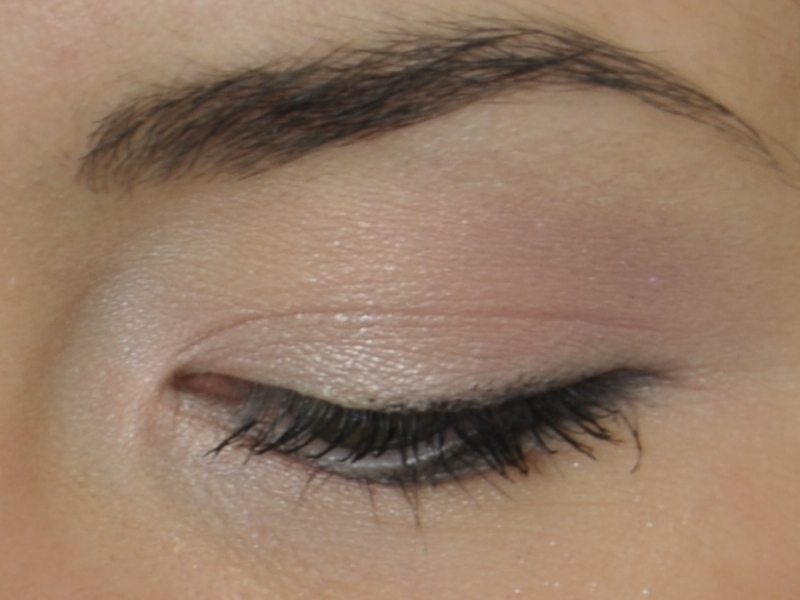 - Makijaż oka rozpocznij od rozświetlenia wewnętrznego kącika oczu oraz miejsca pod brwią jasnym, cielistym cieniem. Możesz zastosować cień z delikatnymi drobinkami.