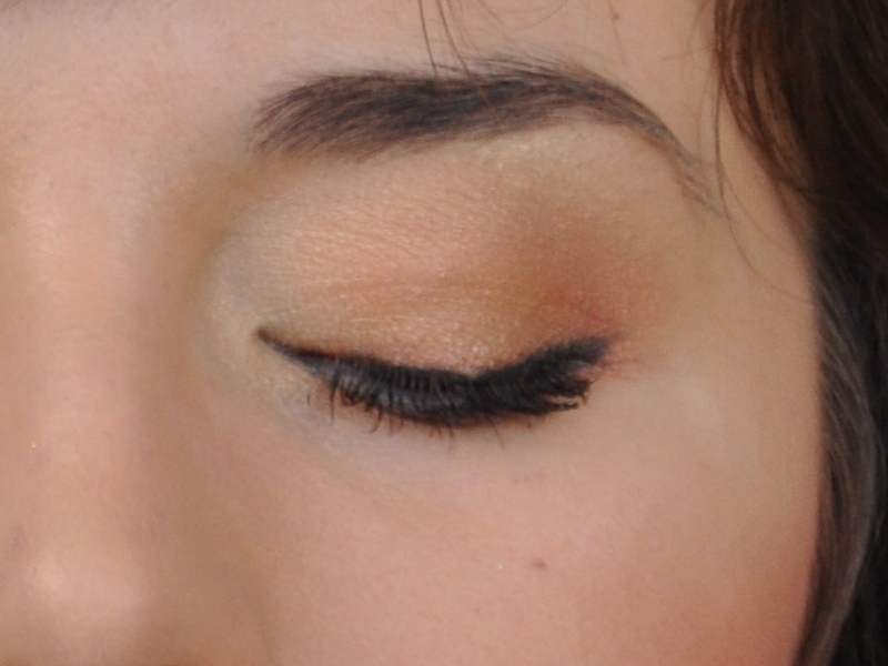 - Brzoskwiniowym paskiem z bronzera łagodzę kontury makijażu powyżej powieki ruchomej, a paskiem jasnym - ponownie rozświetlam wewn.kącik oka.