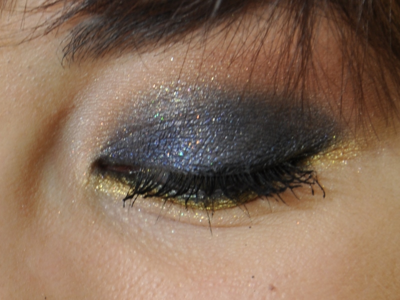 Wybór najpiękniejszego makijażu był szalenie trudny, każdy bowiem był godny uwagi i podpatrzenia z niego czegoś dla siebie. Zdecydowałam się jednak na makijaż Indyjskiej aktorki, modelki, Miss Świata Aishwarya Rai . Do białego gorsetu oraz granatowej spódnicy aktorka miała dobrany makijaż w odcieniach granatu i złota. Cała uwaga skupia się jednak na intensywnie podkreślonych oczach, usta pozostały neutralne, twarz delikatnie wykonturowana i rozświetlona. Jest to zdecydowanie makijaż wieczorowy, niekoniecznie jednak w stylu Bollywood. Dla uzyskania większej głębi koloru cień granatowy - dominujący w całym makijażu - nałożyłam na cień w musie oraz przy użyciu zwilżonego pędzelka. Dzięki temu też drobinki złota występujące w cieniu zostały bardziej wyeksponowane, a sam makijaż zyskał na błyszczącym wykończeniu idealnym dla makijażu wieczorowego.