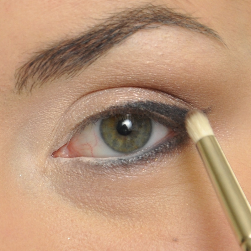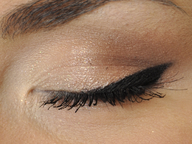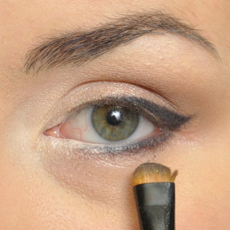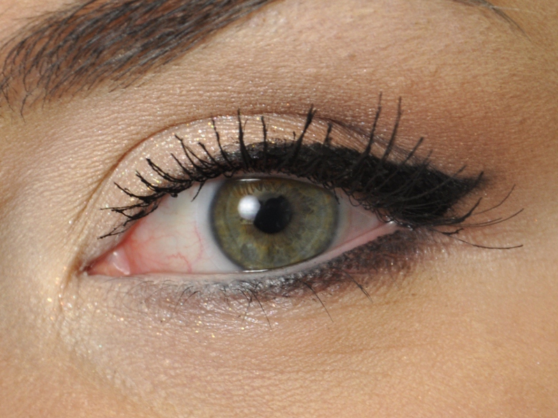 Efekt Waszych podpowiedzi możecie ocenić we filmiku oraz na poniższych zdjęciach. Makijaż na prawdę nie jest skomplikowany, ani czasochłonny. W żaden też sposób nie jest wymyślny , ani odkrywczy, lecz stonowany i elegancki. Zresztą pewnie niejedna z Was stwierdzi, że coś podobnego już gdzieś widziała... Przygotowując się jednak do filmiku starałam się wczuć w Wasz wiek i oczekiwania - chciałam uzyskać makijaż podkreślający i \"otwierający\" oko, przy tym znacznie intensywniejszy niż standardowy makijaż dzienny. Stąd też gruba kreska na powiece górnej wykonana czarnym eyelinerem, wyrysowana od połowy oka (przez co nie zmniejsza oczu), kępki sztucznych rzęs od zewnętrznej strony oraz połyskujące drobinki od wewnętrznego kącika oka.