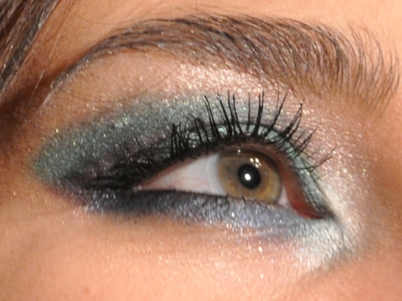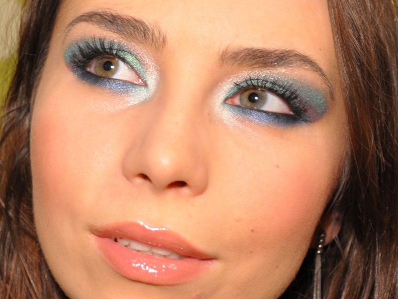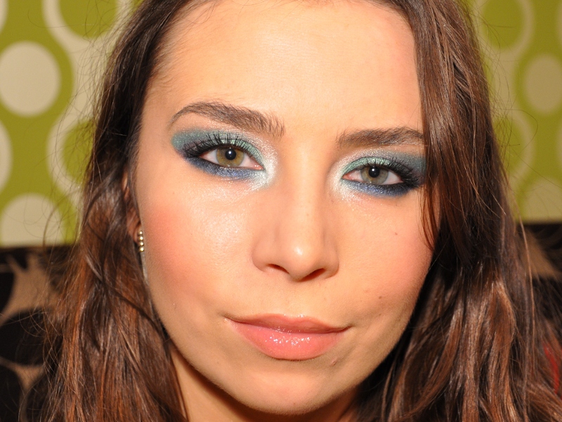 - cieniem w kolorze indygo przykrywamy, wcześniej namalowaną, kreskę na dolnej powiece, kolor lekko wyciągamy ku górze,
