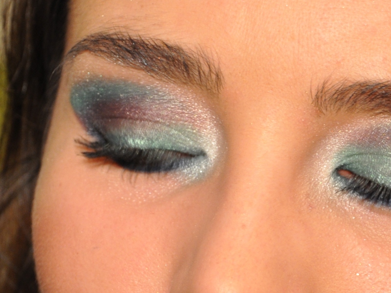 - tuż nad kolorem fioletowym leciutko przeciągamy pyłek turkusowy,