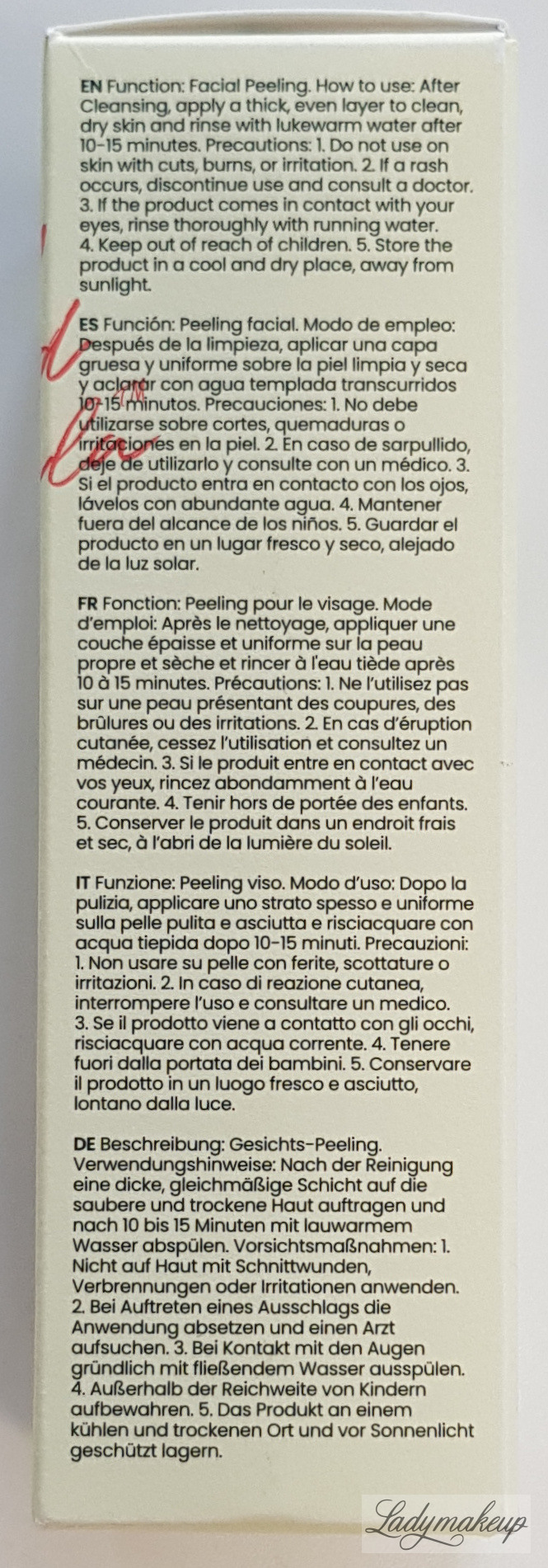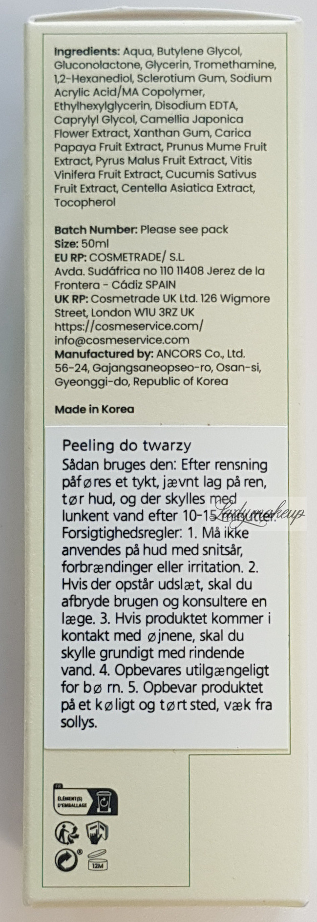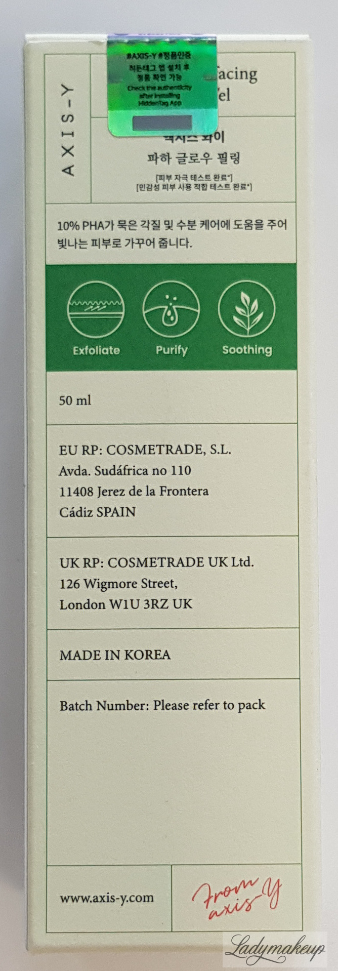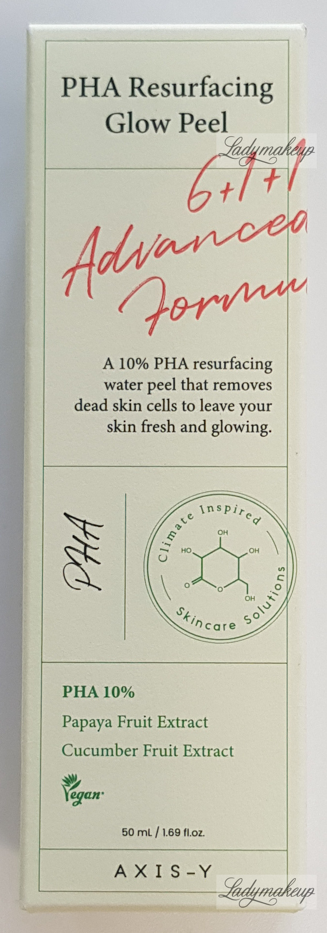 Peeling do twarzy. Przeznaczony do pielęgnacji skóry każdego rodzaju. Posiada delikatną wodnisto-żelową formułę, która dobrze i szybko wchłania się w naskórek, bez tłustej, lepkiej warstwy. W swojej formule zawiera takie składniki aktywne jak: glukonolakton 10%, witamina E oraz ekstrakty z papai, wąkroty azjatyckiej i z ogórka. Peeling Axis-y delikatnie złuszcza martwy naskórek, widocznie wygładza, a także oczyszcza powierzchnię skóry. Dodatkowo przyspiesza regenerację skóry, a także łagodzi oraz koi podrażnienia i stany zapalne. Axis-y peeling działa antyoksydacyjnie. Kosmetyk dostępny jest w opakowaniu o pojemności 50 ml.