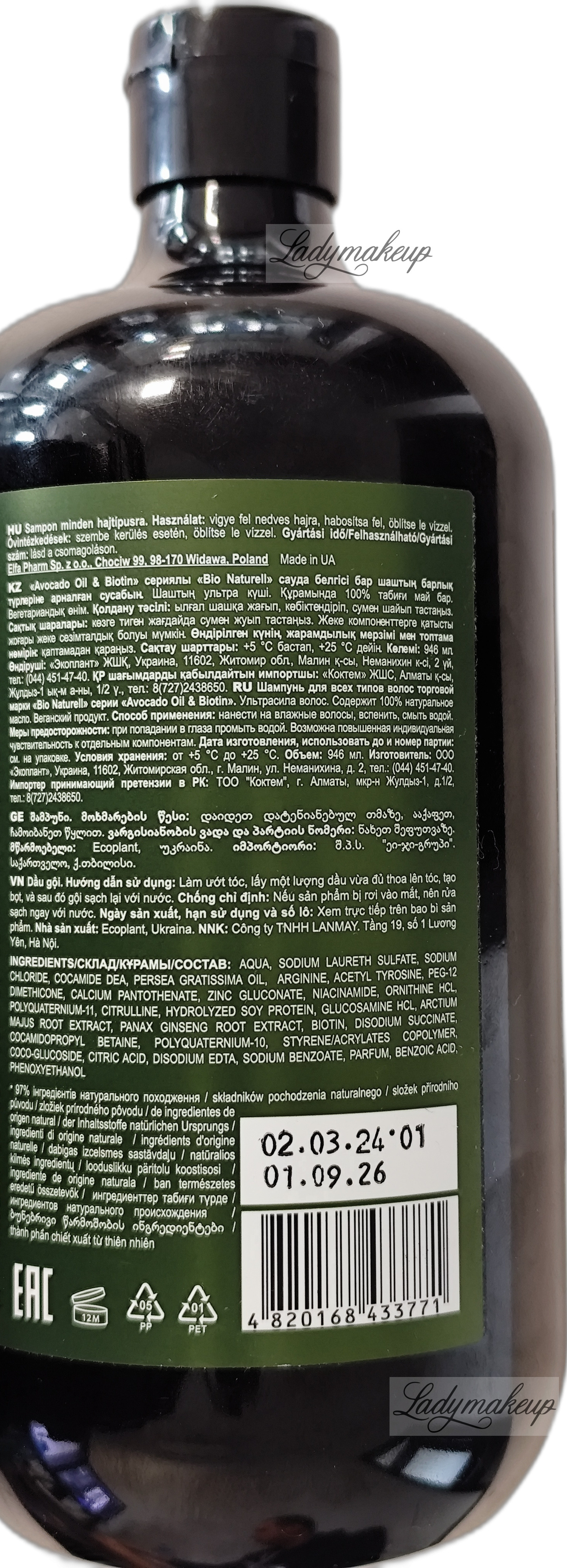 Avocado Oil & Biotin Shampoo marki Bio Naturell.