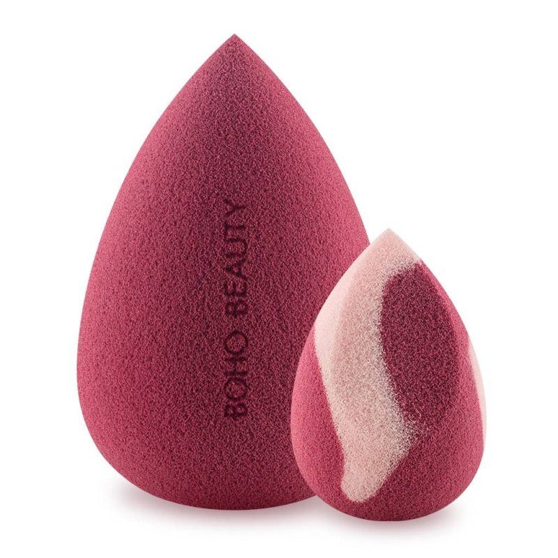 Zestaw gąbek do makijażu. Zostały wykonane z ultra miękkiego materiału, który jest bardzo sprężysty i elastyczny. Nie zawierają w sobie lateksu, są hipoalergiczne oraz w 100% wegańskie. Zwarta struktura nie pochłania zbyt dużo kosmetyków. Podczas aplikacji dobrze wtapiają kosmetyki w pory skóry, bez żadnych smug ani plam. Zestaw składa się z dwóch sztuk gąbeczek w wersji Pinky Berry Mini Cut - mini jajeczko z jednym ściętym bokiem oraz Berry Regular - klasyczny kształt jajeczka.