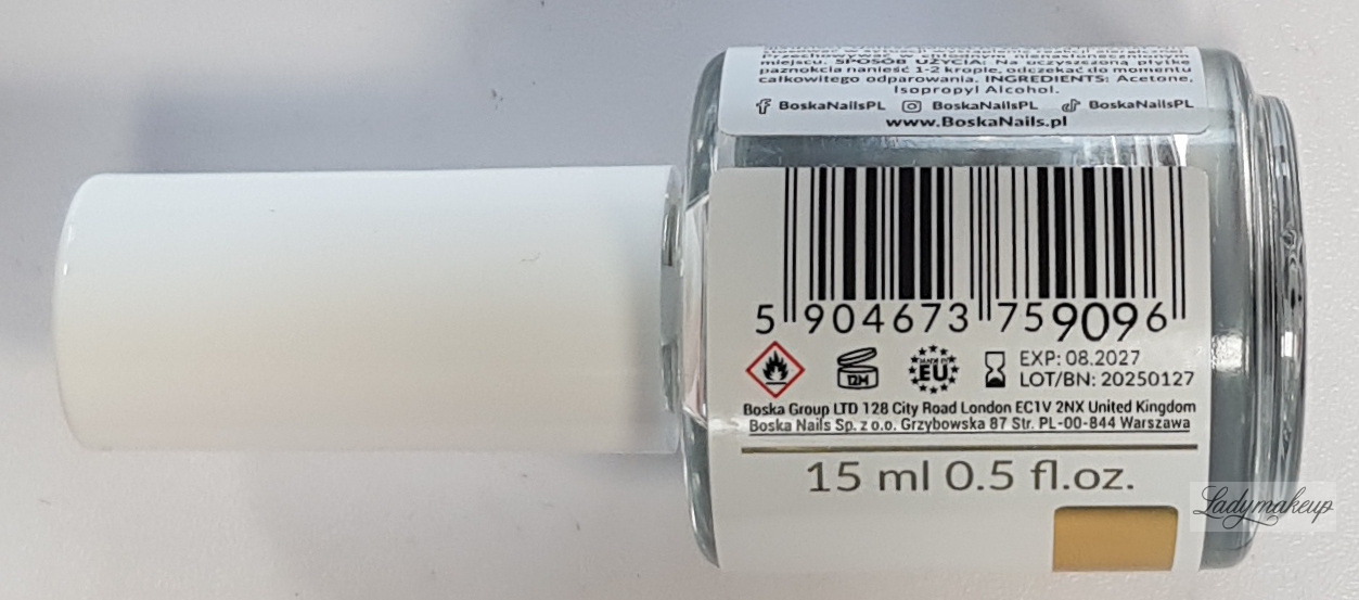 Odtłuszczacz do paznokci. Skutecznie przygotowuje naturalne paznokcie do wykonania wielu różnych stylizacji paznokci z wykorzystaniem np. lakierów hybrydowych, żelowych czy akrylowych. Jak sama nazwa wskazuje, dobrze odtłuszcza, a przy tym usuwa wilgoć i zanieczyszczenia z naturalnej płytki paznokcia. Po aplikacji znacząco zwiększa przyczepność produktów, zapewniając tym samym jej maksymalną trwałość. Kosmetyk został wyposażony w specjalny elastyczny i odpowiednio wyprofilowany pędzelek, który sprawia, że aplikacja produktu jest bardzo łatwa i szybka, bez względu na umiejętności i doświadczenie osoby wykonującej stylizacje. Dostępny jest w buteleczce o pojemności 15 ml.