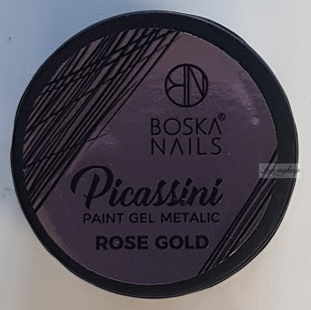 Żel do paznokci. Przeznaczony do manicure i pedicure utwardzanego w lampie UV/LED. Będzie niezastąpiony w tworzeniu zarówno codziennych stylizacji, jak i tych bardziej finezyjnych na większe wyjścia czy specjalne imprezy. Picassini żel Boska Nails ma formułę o odpowiedniej gęstości, dzięki czemu jego aplikacja jest niezwykle przyjemna, prosta oraz bezproblemowa. Pozwala na stworzenie zarówno cienkich, precyzyjnych linii, kropek oraz innych bardziej zaawansowanych kształtów i wzorków na płytce paznokcia o metalicznym wykończeniu. Boska żel ma bardzo dobrze napigmentowaną formułę, odporną na ścieranie, a przy tym długotrwałą. Produkt dostępny jest w słoiczku o pojemności 5 ml.