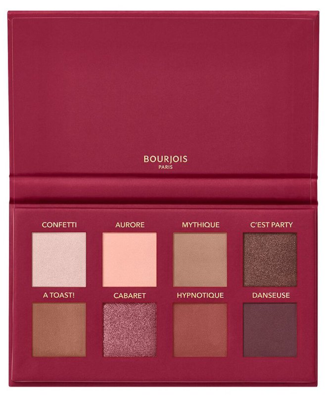Paleta cieni do powiek. Składa się z 8 odcieni o pudrowo-kremowej formule, dobrej pigmentacji i aksamitnej strukturze. Cienie Bourjois mają różne wykończenia (perłowe, matowe, z drobinkami) i doskonale sprawdzą się do wykonywania wielu różnych makijaży na co dzień oraz na większe wyjścia na wieczór. Bourjois paleta cieni zapewnia niezwykle wysoką trwałość, aż do 15 godzin, a przy tym nie zbiera się w załamaniach i nie rozmazuje. Paleta Bourjois umieszczona została w eleganckim, solidnym tekturowym opakowaniu w stylu glamour.