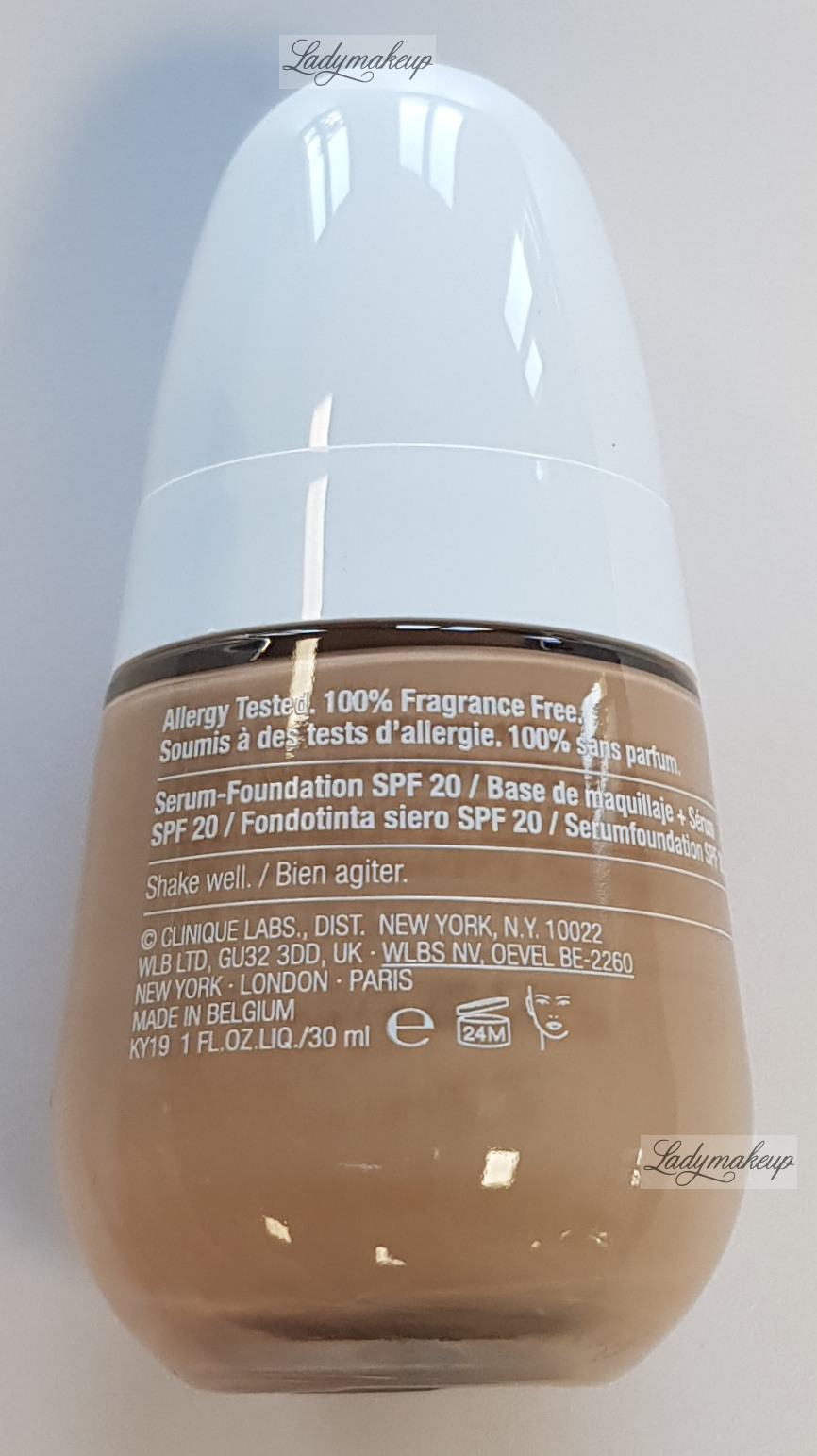Podkład do twarzy. Stworzony z myślą o skórze każdego rodzaju. W swoim składzie zawiera takie składniki jak m.in.: kwas hialuronowy, kwas salicylowy, molekuł UP302 oraz witaminę C, które aktywnie dbają o dobrostan naskórka. Podkład Clinique pięknie wyrównuje oraz ujednolica koloryt, zapewniając naturalne, satynowe wykończenie oraz efekt lekkiego krycia. Po nałożeniu nie podkreśla porów, nie gromadzi się w zmarszczkach, a także nie tworzy efektu maski. Ponadto Clinique podkład dogłębnie i długotrwale nawilża oraz wygładza naskórek. Dodatek filtra SPF20 zapewnia dobrą ochronę przed szkodliwym działaniem promieni UVA oraz UVB. Kosmetyk dostępny jest w opakowaniu o pojemności 30 ml.