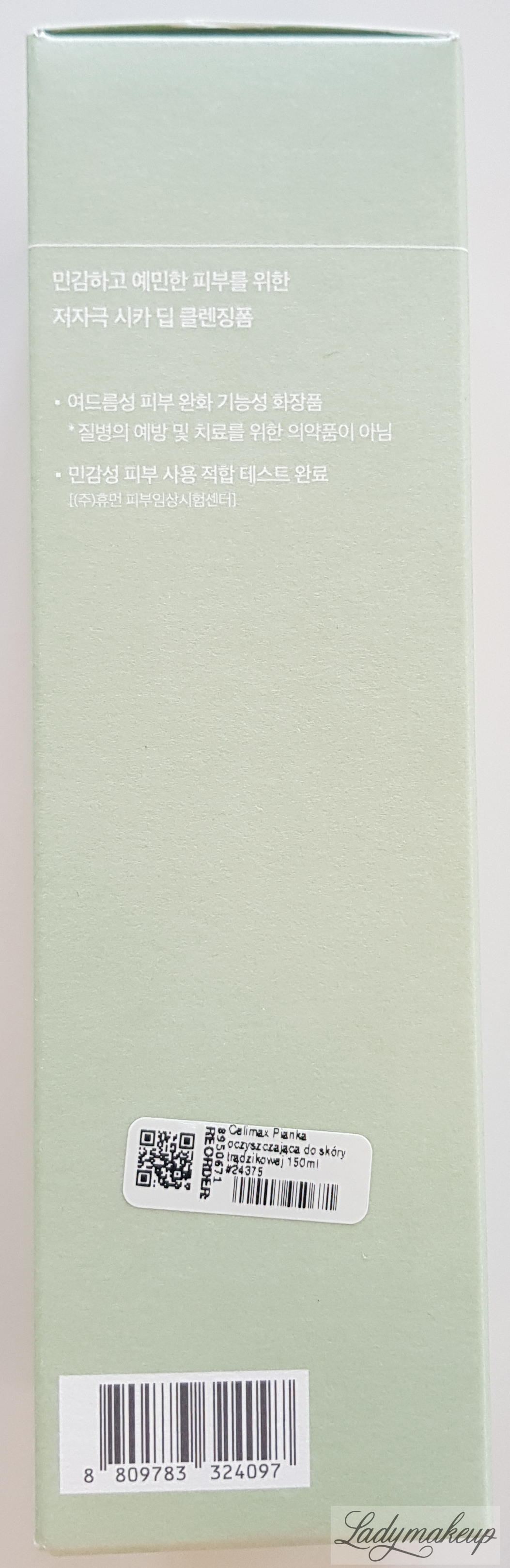 Pianka do twarzy. Doskonale sprawdzi się w pielęgnacji skóry tłustej oraz trądzikowej. W swojej formule zawiera specjalnie wyselekcjonowane składniki aktywne takie jak: kwas salicylowy, olejek z drzewa herbacianego, ekstrakt z wąkroty azjatyckiej oraz lizat bakterii Bifida. Pianka Celimax dokładnie oczyszcza skórę z zanieczyszczeń, a także nadmiaru sebum, a przy tym jest bardzo delikatna dzięki czemu nie podrażnia wrażliwej skóry. Dodatkowo pianka Celimax delikatnie złuszcza martwy naskórek, a także działa przeciwzapalnie, bakteriobójczo, przeciwtrądzikowo i ściągająco. Ponadto zmniejsza stany zapalne, zapobiega powstawaniu wyprysków oraz poprawia koloryt i nawilża. Kosmetyk dostępny jest w tubce o pojemności 150 ml.