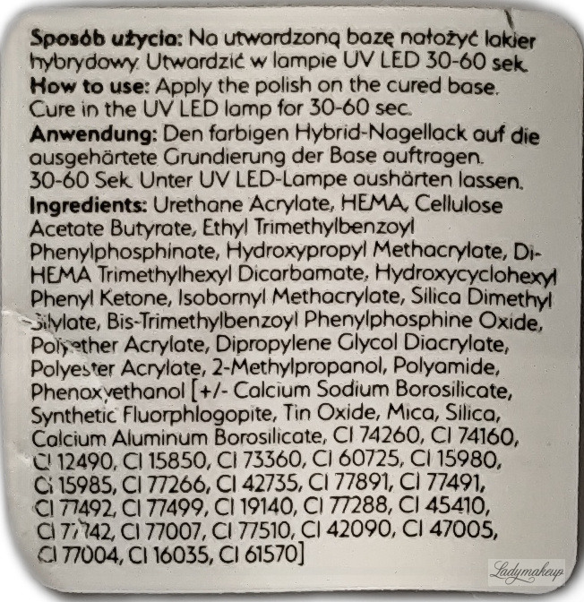 Lakier hybrydowy. Pochodzi z kolekcji Glowing - Glitter, która z apewni paznokciom magiczne wykończenie z połyskującym brokatowym blaskiem, a dzięki temu fantastycznie dopełni wieczorową kreację. Utrzymuje się na płytce do 3 tygodni, bez uszkodzeń i odprysków. Posiada mocno napigmentowaną formułę, o średniej gęstości, która nie tworzy nieestetycznych smug i zacieków. Elastyczny pędzelek, w który została wyposażona mała, czarna buteleczka z kosmetykiem, równomiernie rozprowadza produkt.