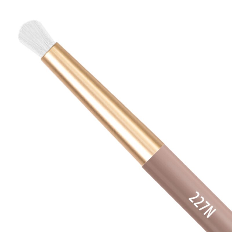 Pędzel do makijażu. Pochodzi z kolekcji Nature&More. Wykonany został z miękkiego, naturalnego włosia kozy, które nie drapie i nie podrażnia nawet delikatnej skóry. Posiada kształt niewielkiej i precyzyjnej kuleczki, która dotrze wszędzie tam gdzie potrzeba maksymalnej precyzji np. wewnętrzny kącik oka, dolna powieka czy przy rozblendowaniu kredki. Całość została umieszczona na miedziano-złotej skuwce oraz drewnianej rączce, polakierowanej na kuszący odcień matowej kawy z mlekiem. Pędzel doskonale sprawdzi się dla osób początkujących i profesjonalistów.