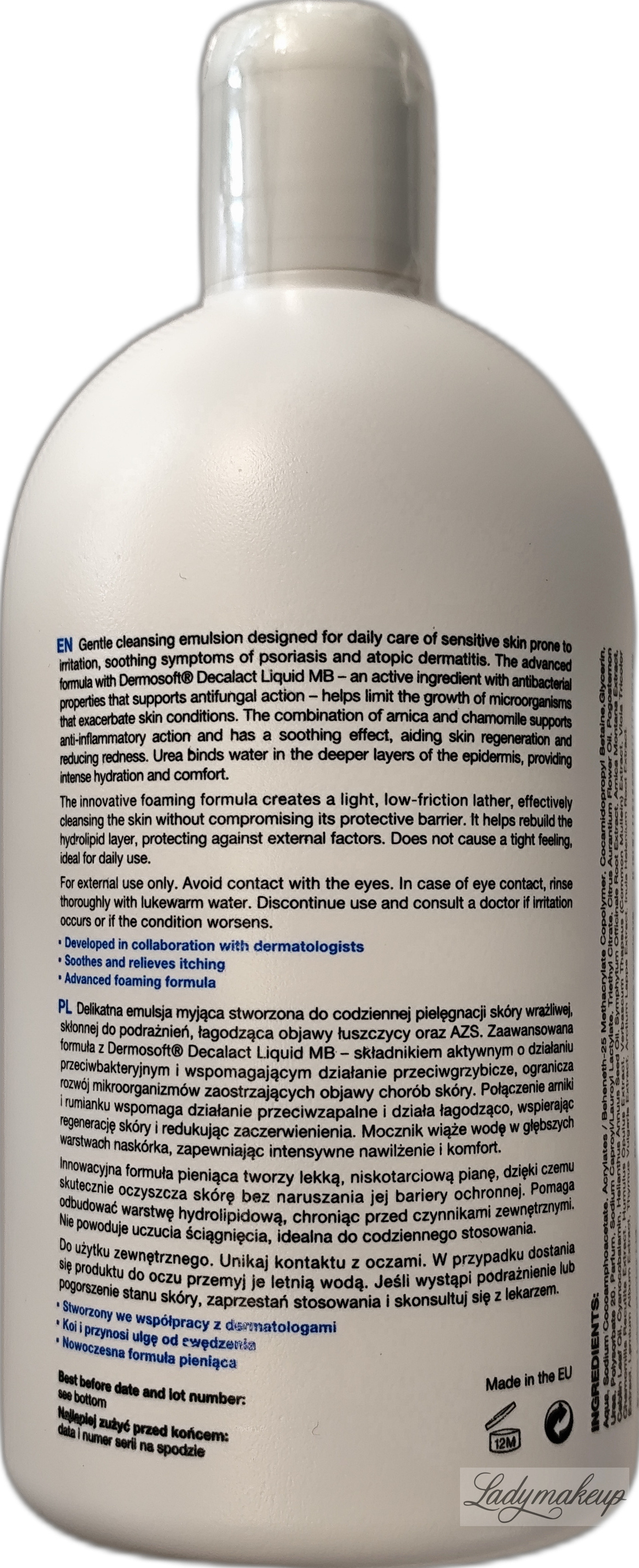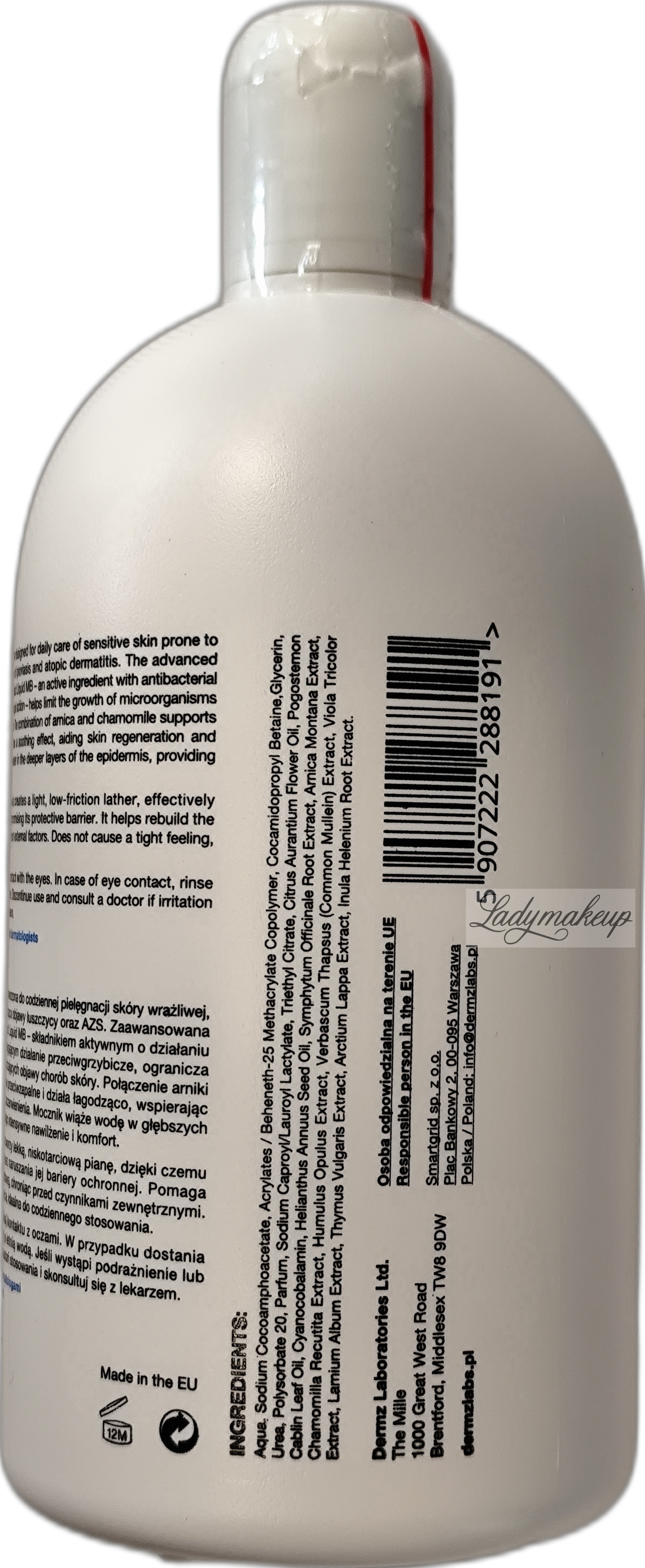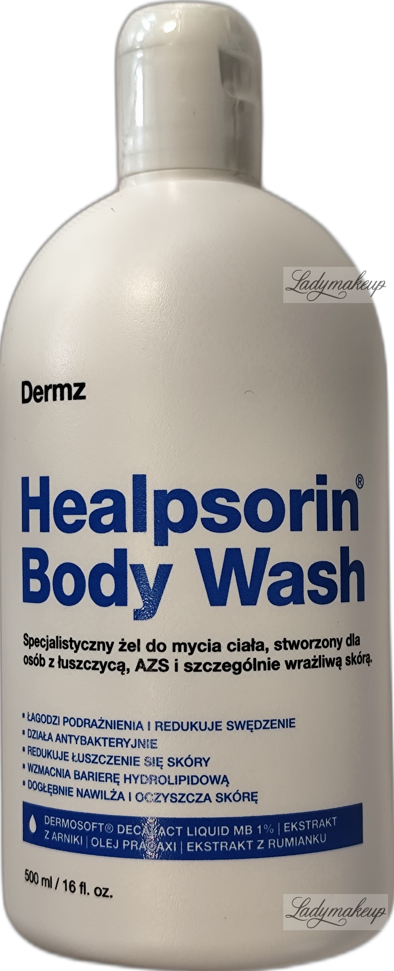 Żel do twarzy i ciała. Powstała na bazie specjalistycznej receptury i jest skierowana do osób zmagających się z łuszczycą i AZS, a także posiadających mocno wrażliwą cerę. Swoje działanie opiera na bazie kluczowych składników aktywnych, takich jak: ekstrakt z arniki, olej pracaxi, ekstrakt z rumianku oraz kompleks Dermosoft Decalact Liquid MP. Żel Dermz dobrze myje oraz oczyszcza skórę z zanieczyszczeń, bez naruszania bariery ochronnej naskórka. Jednocześnie łagodzi i koi podrażnienia, niweluje łuszczenie się naskórka, a także redukuje swędzenie spowodowane egzemą i łuszczycą. Dermz żel dogłębnie nawilża oraz wygładza naskórek, a przy tym działa antybakteryjnie. Kosmetyk dostępny jest w opakowaniu o pojemności 500 ml.