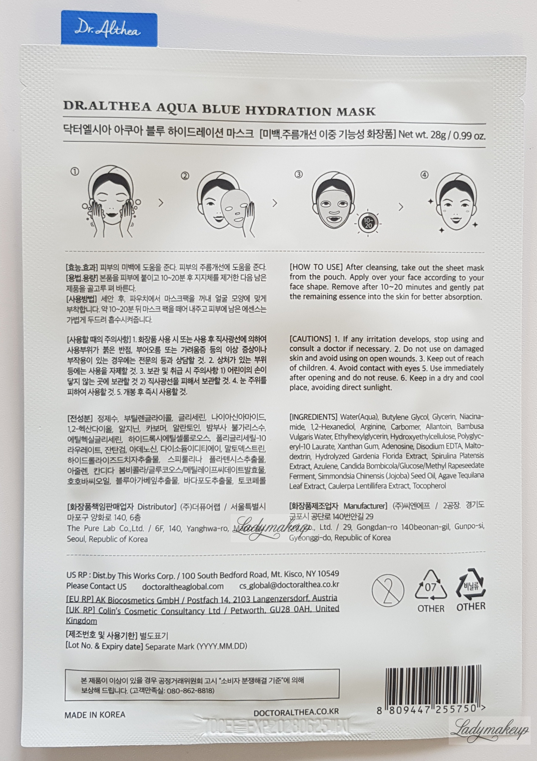 Aqua Blue Hydration Mask marki Dr. Althea.
