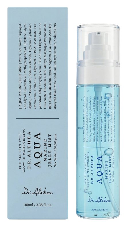 Mgiełka do twarzy. Może być stosowana do skóry każdego rodzaju. W składzie zawiera takie składniki aktywne, jak: PDRN, kwas hialuronowy, beta-glukan oraz wodę morską 10%. Mgiełka Dr.Althea przyjemnie odświeża i tonizuje naskórek, jednocześnie dogłębnie i długotrwale nawilżając twarz. Po zastosowaniu cera jest widocznie wygładzona, zmiękczona, napięta i ujędrniona. Równocześnie Dr.Althea mgiełka redukuje drobne linie i zmarszczki, regeneruje i rewitalizuje, a także dodaje skórze zdrowego blasku. Pozwala osiągnąć kuszący efekt tzw. "plump". Produkt dostępny jest w poręcznym opakowaniu o pojemności 100 ml.
