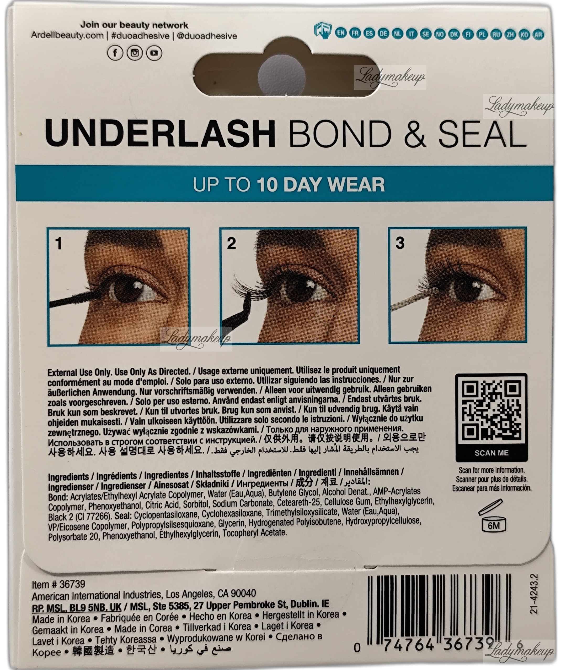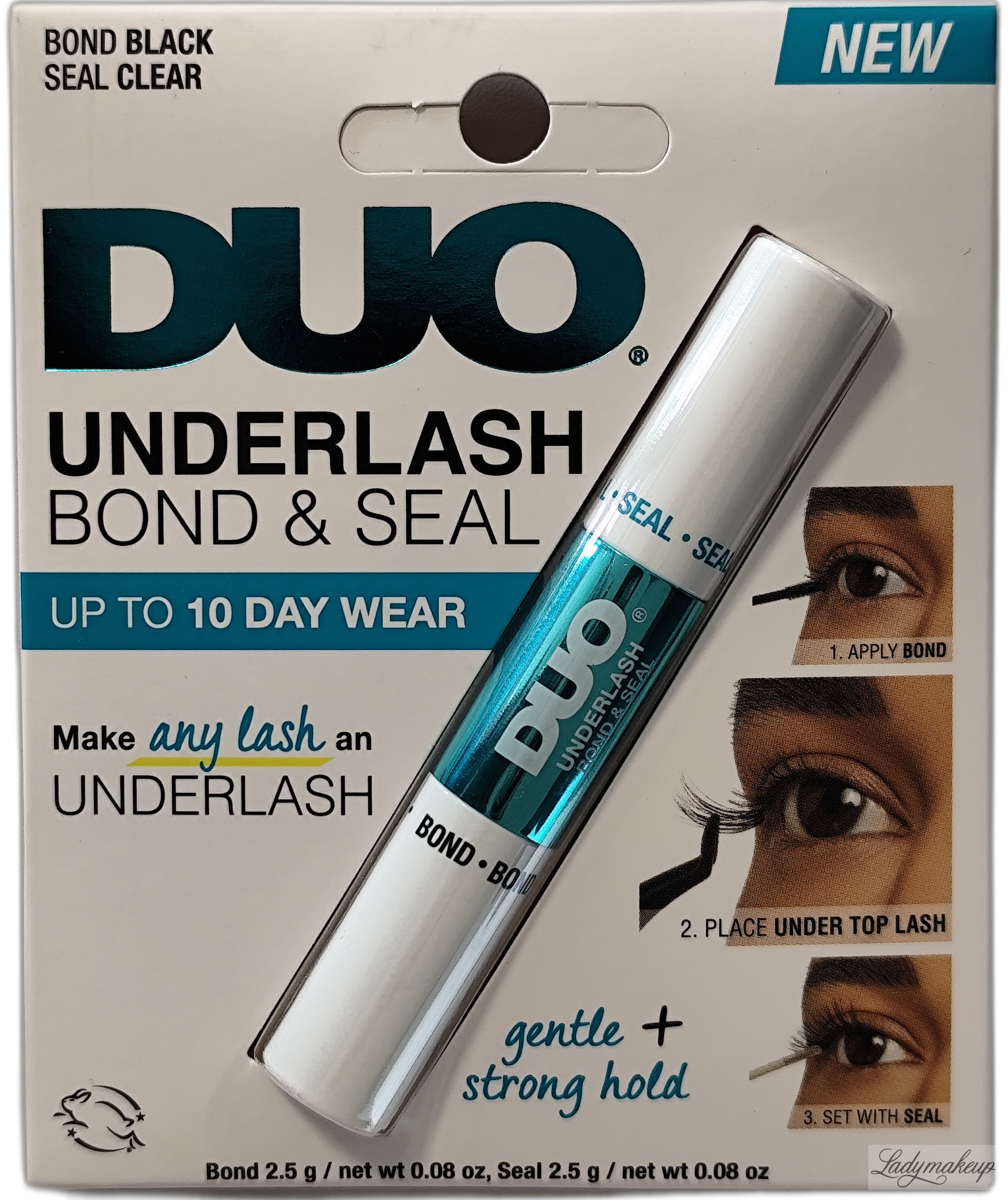 Klej i utrwalacz do sztucznych rzęs. To wspaniała alternatywa dla przedłużania rzęs w salonie, gdyż daje wręcz identyczne rezultaty. Produkt będzie idealnie współgrał z rzęsami każdego rodzaju oraz będzie wydłużał ich trwałość nawet do 10 dni! Wyposażony został w dwie końcówki: Bond oraz Seal. Bond ma czarną barwę i należy go nałożyć na naturalne rzęsy w celu przygotowania ich do aplikacji sztucznych rzęs, zaś klej Seal w odcieniu przezroczystym usuwa wszelkie lepkie pozostałości oraz utrzymuje kępki na miejscu przez cały dzień. Produkt jest niezwykle prosty oraz szybki w użyciu, dzięki czemu sprawdzi się nawet przy mniej wprawnej parze rąk.