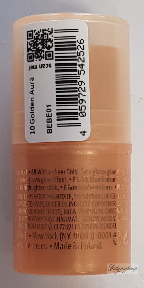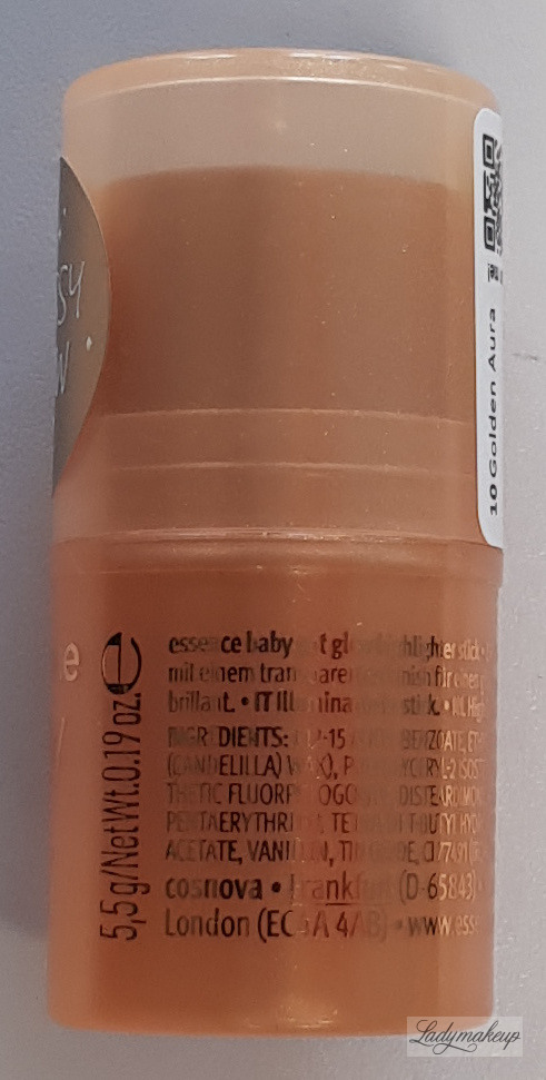 Rozświetlacz do twarzy. Posiada wygodną formę wykręcanego sztyftu. Specjalna kremowa formuła została wypełniona po brzegi perłowymi złotymi drobinkami. Rozświetlacz Essence doskonale łączy się z innymi kosmetykami do makijażu tworząc spektakularne błyszczące wykończenie. Pięknie podkreśla policzki, grzbiet nosa, łuk kupidyna oraz łuk brwiowy. Dodatkowo Essence rozświetlacz optycznie uwypukla wybrane partie twarzy, cudnie rozświetla oraz rozjaśnia. Może być noszony zarówno samodzielnie jak i na makijaż. Kosmetyk dostępny jest w formie wygodnego wykręcanego sztyftu o pojemności 5,5 g.