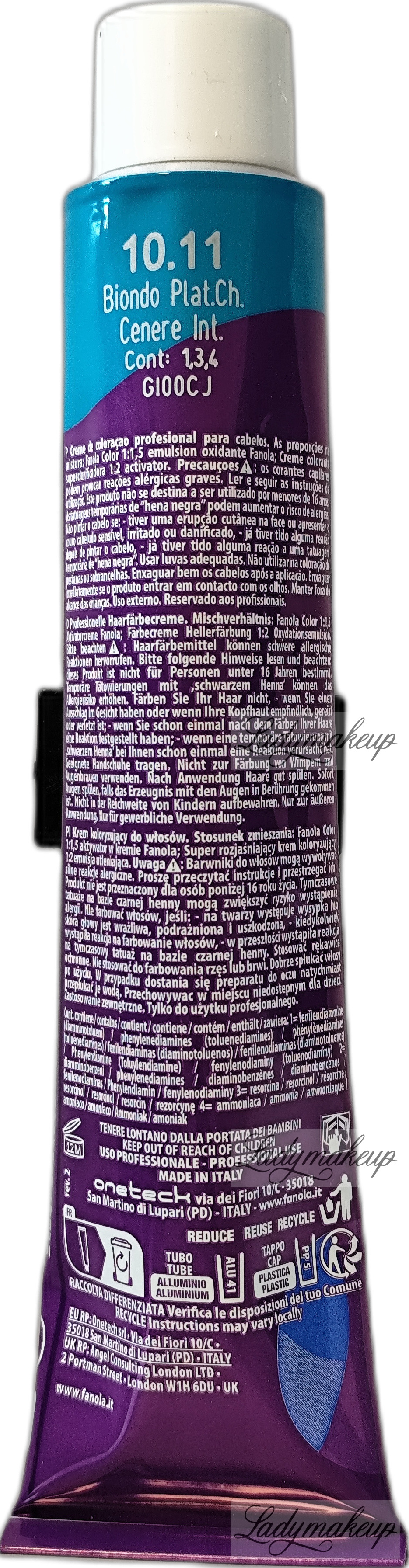 Włoska farba do włosów. Doskonale sprawdzi się przy każdym rodzaju włosów. Będzie idealna do pasm o każdym odcieniu również siwych, gdyż bez problemu zapewnia ich dobre pokrycie. Farba Fanola posiada delikatną formułę o bardzo niskiej zawartości amoniaku, dzięki czemu nie podrażnia ona skóry głowy. Dodatkowo ma w sobie ekstrakt z miłorzębu japońskiego, który przywraca włosom nawilżenie miękkość oraz zdrowy blask. Fanola farba utrzymuje się na włosach przez bardzo długi czas, zaś kolor jest intensywny i mocno nasycony. Po farbowaniu włosy zyskują jędrność, sprężystość oraz niesamowity połysk. Kosmetyk dostępny jest w poręcznej tubce o pojemności 100 ml oraz w odcieniu 10.11.