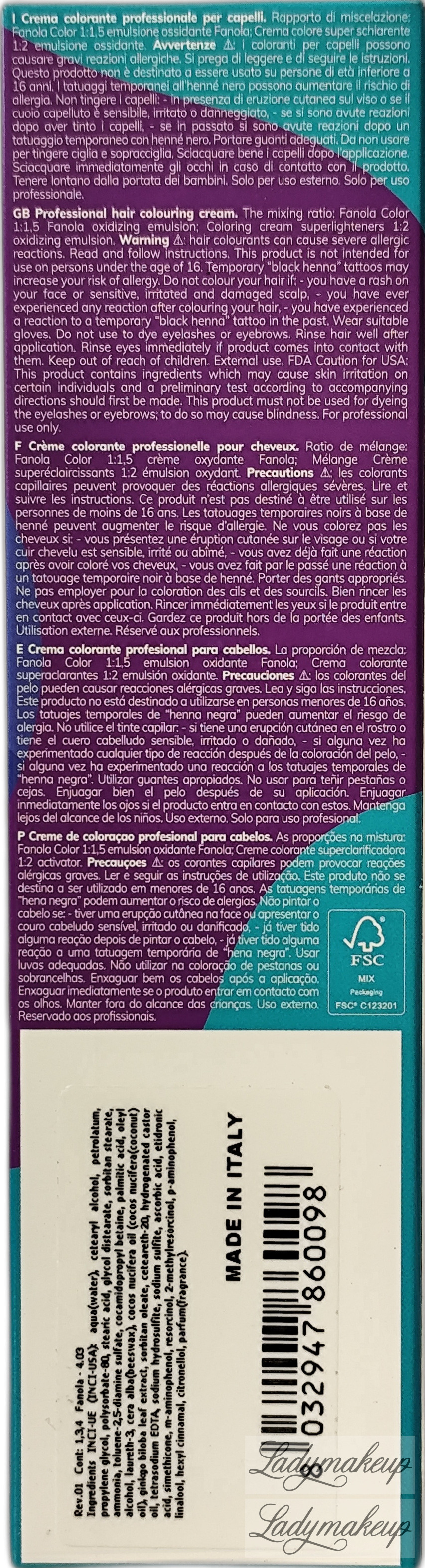 Color - Professional Hair Colouring Cream marki Fanola.