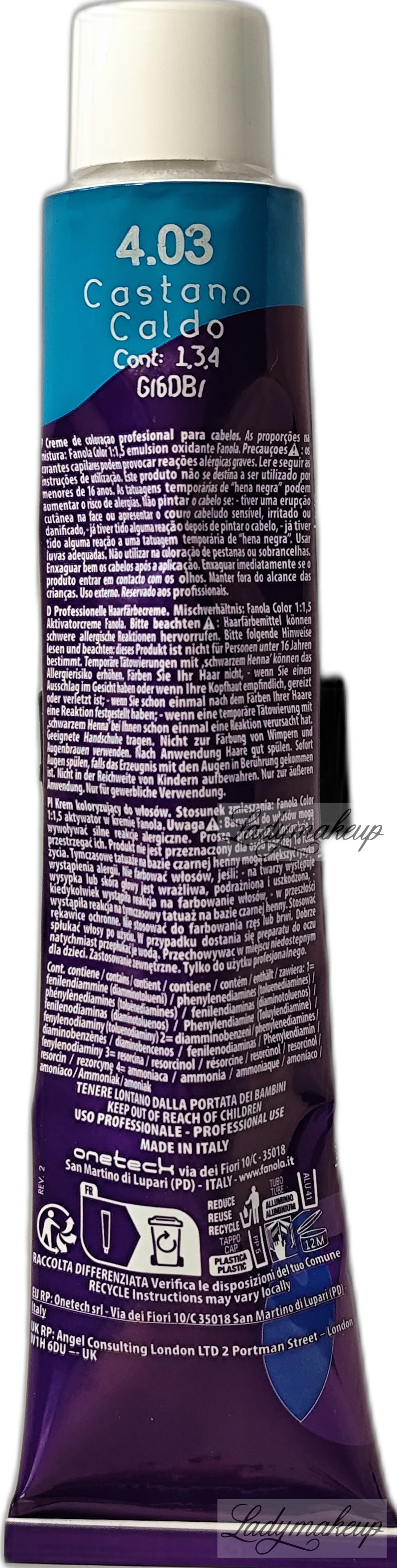Włoska farba do włosów. Doskonale sprawdzi się przy każdym rodzaju włosów. Będzie idealna do pasm o każdym odcieniu również siwych, gdyż bez problemu zapewnia ich dobre pokrycie. Farba Fanola posiada delikatną formułę o bardzo niskiej zawartości amoniaku, dzięki czemu nie podrażnia ona skóry głowy. Dodatkowo ma w sobie ekstrakt z miłorzębu japońskiego, który przywraca włosom nawilżenie miękkość oraz zdrowy blask. Fanola farba utrzymuje się na włosach przez bardzo długi czas, zaś kolor jest intensywny i mocno nasycony. Po farbowaniu włosy zyskują jędrność, sprężystość oraz niesamowity połysk. Kosmetyk dostępny jest w poręcznej tubce o pojemności 100 ml oraz w odcieniu 4.03 Warm Chestnut.