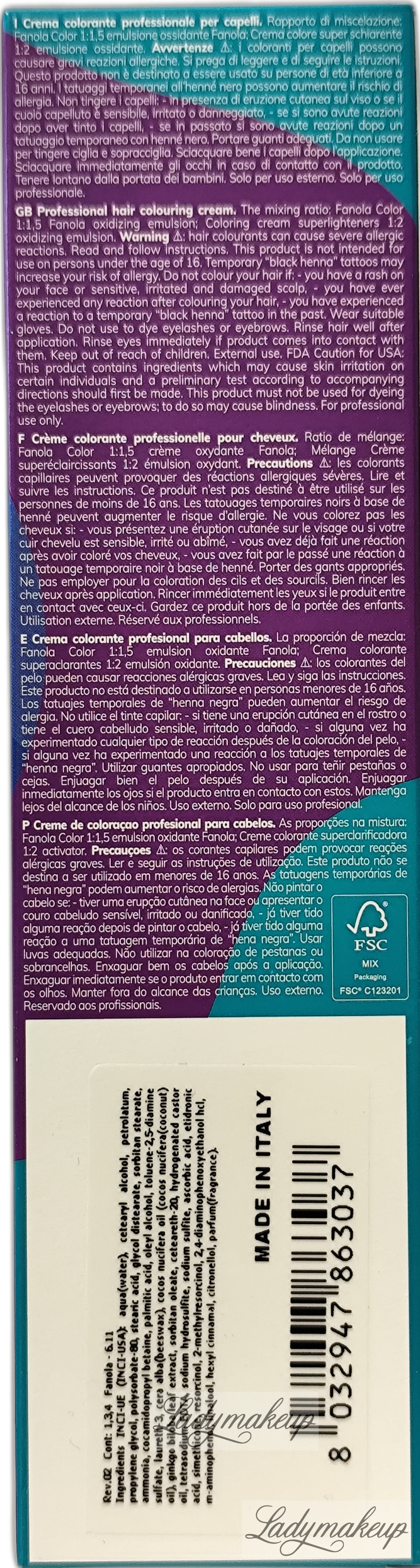Włoska farba do włosów. Doskonale sprawdzi się przy każdym rodzaju włosów. Będzie idealna do pasm o każdym odcieniu również siwych, gdyż bez problemu zapewnia ich dobre pokrycie. Farba Fanola posiada delikatną formułę o bardzo niskiej zawartości amoniaku, dzięki czemu nie podrażnia ona skóry głowy. Dodatkowo ma w sobie ekstrakt z miłorzębu japońskiego, który przywraca włosom nawilżenie miękkość oraz zdrowy blask. Fanola farba utrzymuje się na włosach przez bardzo długi czas, zaś kolor jest intensywny i mocno nasycony. Po farbowaniu włosy zyskują jędrność, sprężystość oraz niesamowity połysk. Kosmetyk dostępny jest w poręcznej tubce o pojemności 100 ml oraz w odcieniu 6.11.