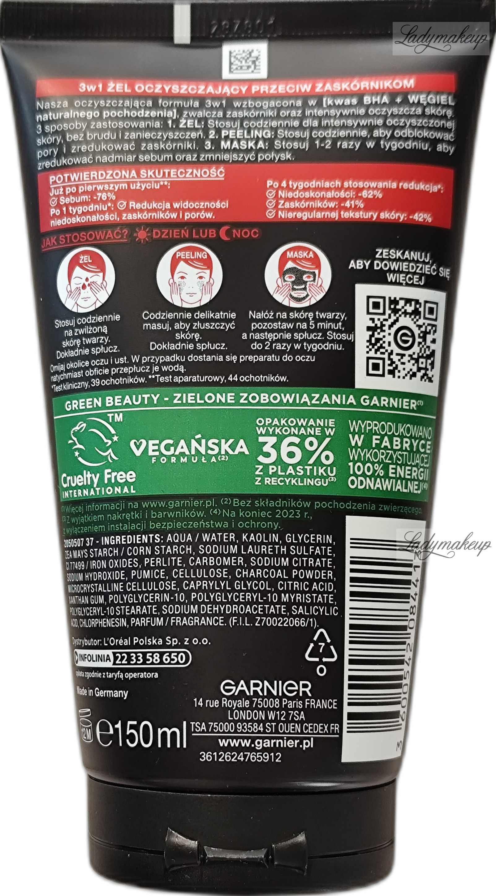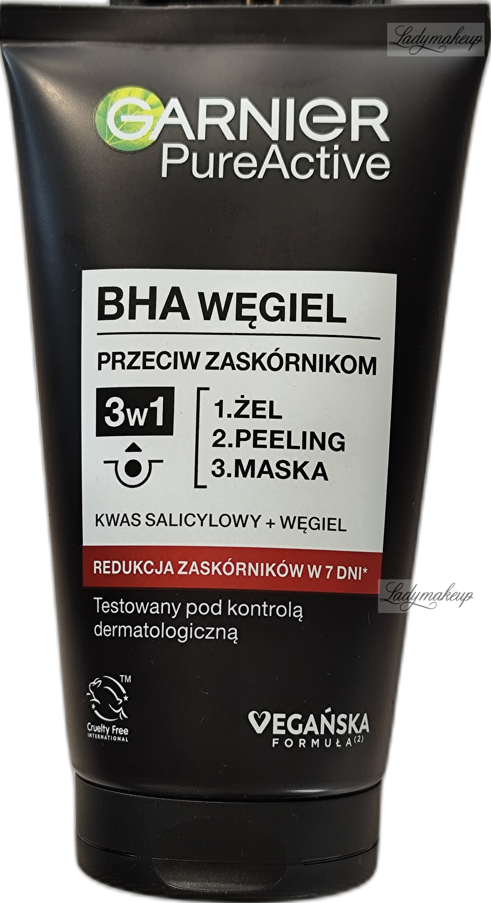 Opinie o GARNIER - Pure Active - KWAS BHA I WĘGIEL - Produkt 3 w 1 przeciw zaskórnikom - żel, peeling, maska - 150 ml: