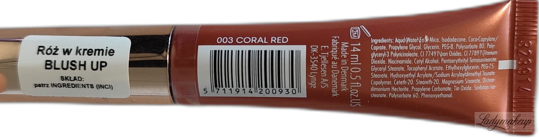Róż do twarzy. Posiada lekką, kremową formułę, która łączy się z innymi kosmetykami oraz wtapia się w podkład. Pozostawia na skórze piękny i naturalnie wyglądający rumieniec z lekkim połyskiem. Pozwala na budowanie krycia od lekkiego po mocne. Doskonale sprawdzi się również jako kremowy cień na powieki. Umieszczony został w poręcznej tubce ze specjalnym gąbeczkowym aplikatorem. Kosmetyk dostępny jest w różnych wariantach kolorystycznych i o pojemności 14 ml.