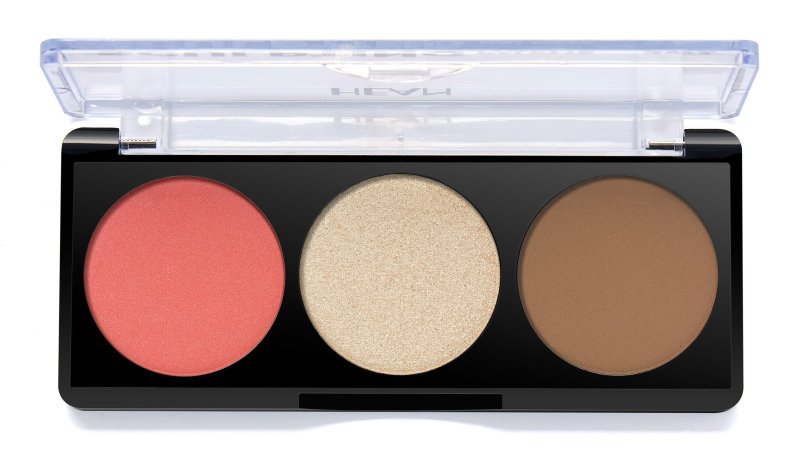 Zestaw do konturowania twarzy. Idealnie podkreśla, rozjaśnia i modeluje owal twarzy. Paleta Hean składa się z 3 pełnowymiarowych produktów: różu, rozświetlacza oraz bronzera. Doskonale sprawdza się podczas wykonywania codziennego makijażu, a także tego na większe wyjścia. Bronzer posiada matową strukturę, dzięki czemu uwydatni kości twarzy i policzków. Po aplikacji cera wygląda jak lekko muśnięta słońcem. Rozświetlacz doskonale podkreśla łuk brwiowy, uwydatnia policzki, a przede wszystkim ich wypukłe części oraz szczyt nosa. Może być aplikowany w kącikach oczu. Róż z dodatkiem drobinek pięknie rozświetla kości policzkowe oraz dodaje im zdrowego, promiennego wyglądu. Hean paleta została umieszczona w solidnym plastikowym opakowaniu o pojemności 9 g.