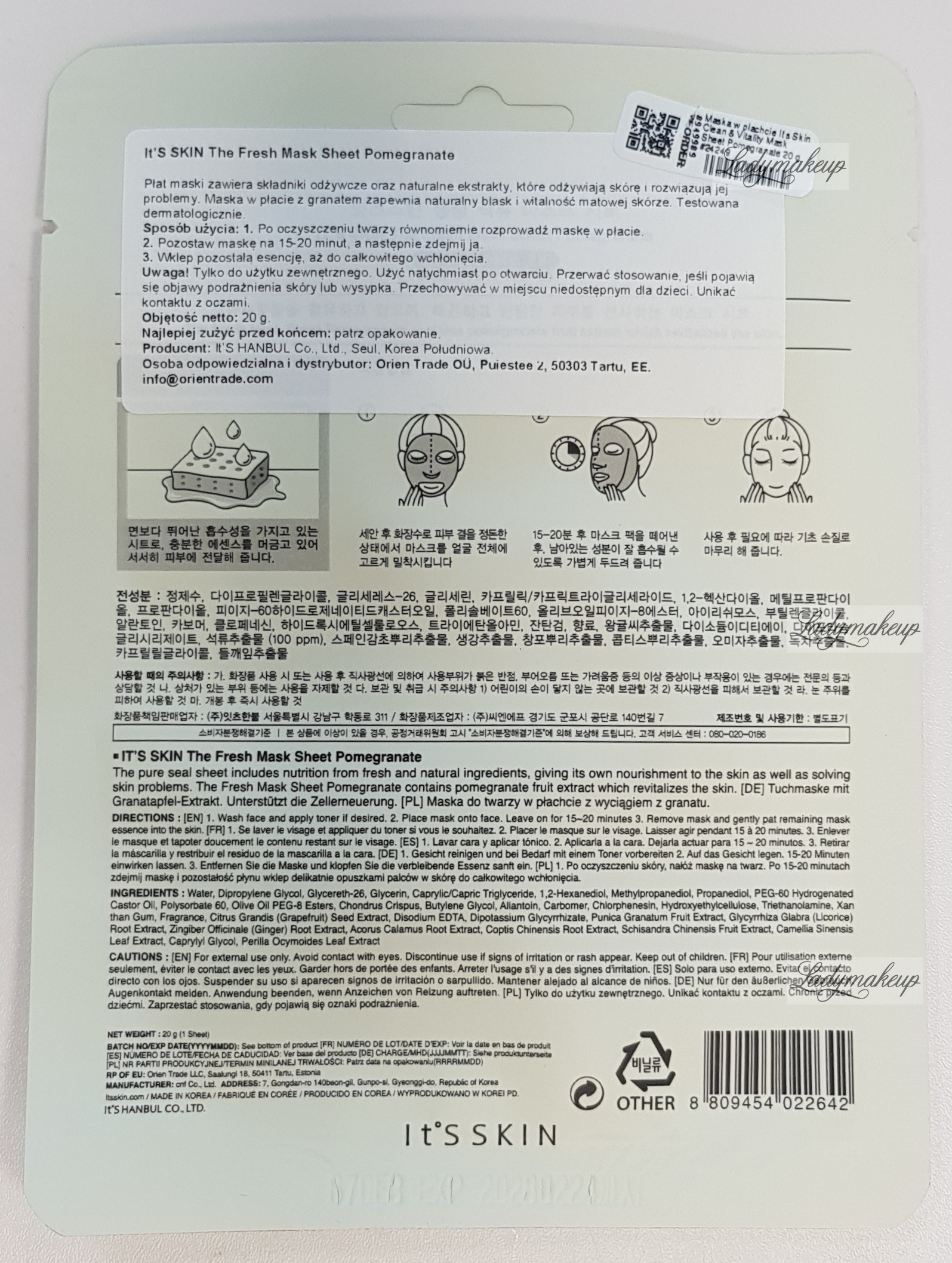Pomegranate Clean & Vitality Mask Sheet marki It's Skin.