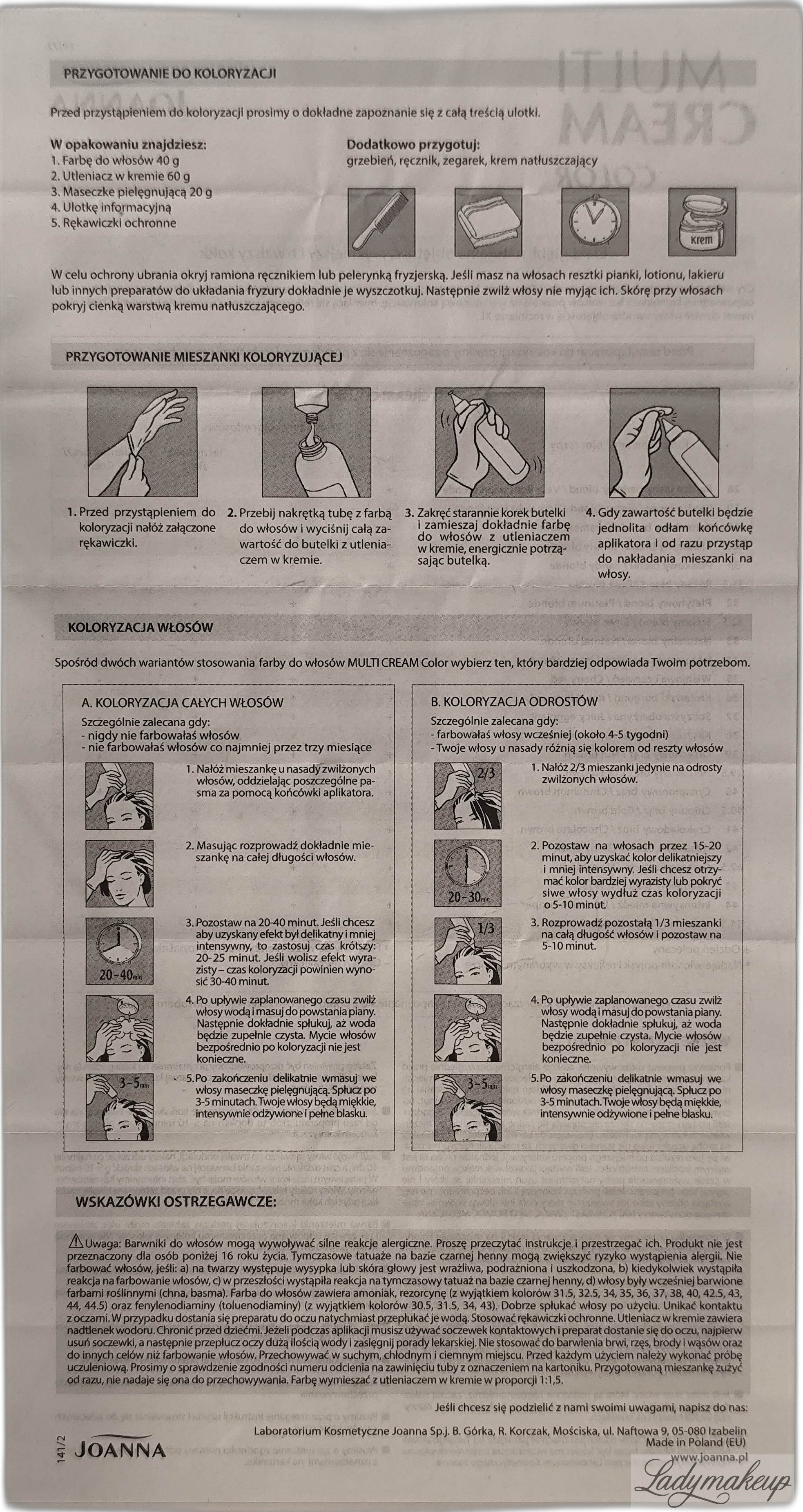 UWAGA: Barwniki do włosów mogą wywoływać silne reakcje alergiczne.