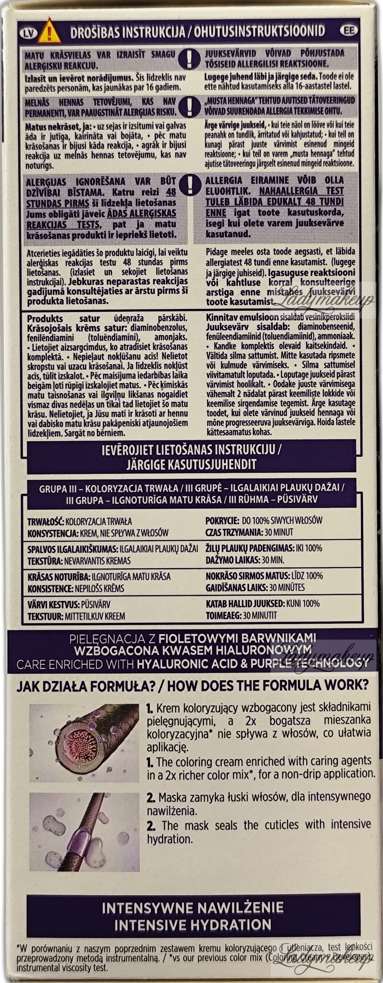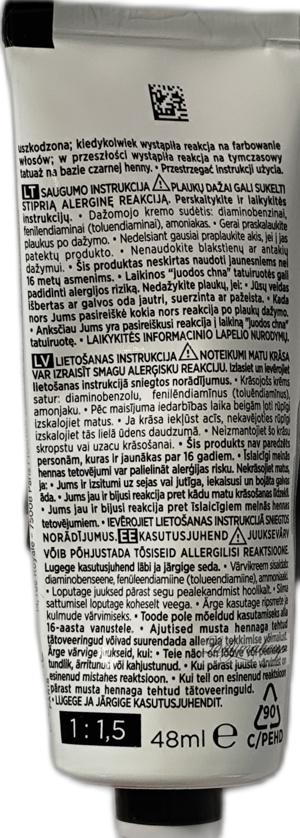 Należy obowiązkowo przeprowadzić OSTRZEGAWCZY TEST NA ALERGIĘ KONIECZNIE 48 godzin przed każdym użyciem tego produktu, nawet jeśli wcześniej używałaś produktów do koloryzacji.