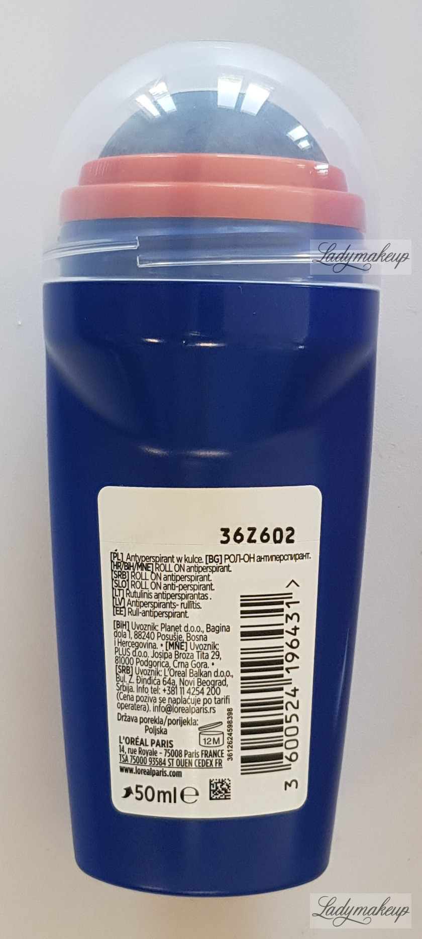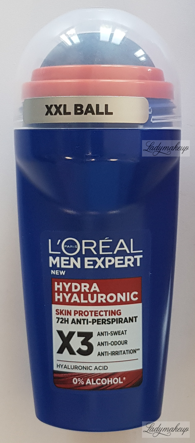 Antyperspirant w kulce. Stworzony z myślą o mężczyznach poszukujących intensywnej i długotrwałej ochrony. Zapewnia aż 72 godziny potrójnego działania: przeciw poceniu, nieprzyjemnemu zapachowi oraz podrażnieniom. Nie zawiera w składzie alkoholu, dlatego jest odpowiedni także dla skóry wrażliwej. Jego formuła została wzbogacona o kwas hialuronowy o właściwościach nawilżających i łagodzących, dzięki czemu produkt dba o kondycję skóry pod pachami. Antyperspirant L'Oréal dostępny o pojemności 50 ml.