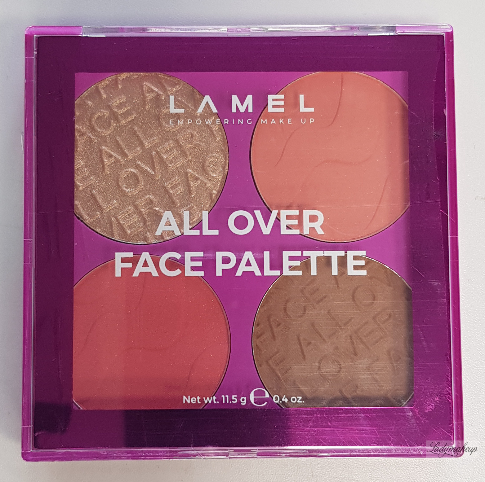 Paleta do makijażu twarzy. Zestaw składa się z 4 pełnowymiarowych produktów z czego dwa to róże do policzków, jeden rozświetlacz do twarzy oraz jeden bronzer. Paleta Lamel idealnie sprawdzi się zarówno podczas codziennego wykonywania makijażu, jak i podczas większych wyjść. Kosmetyki są aksamitnie miękki i gładkie dzięki czemu ich aplikacja i blendowanie jest bajecznie proste. Lamel paleta to również doskonałe rozwiązanie w przypadku podróży, gdyż w jednym miejscu ma się niezbędne kosmetyki do makijażu twarzy. Cały zestaw został zamknięty w niezwykle solidnej plastikowej paletce o pojemności 11,5 g.